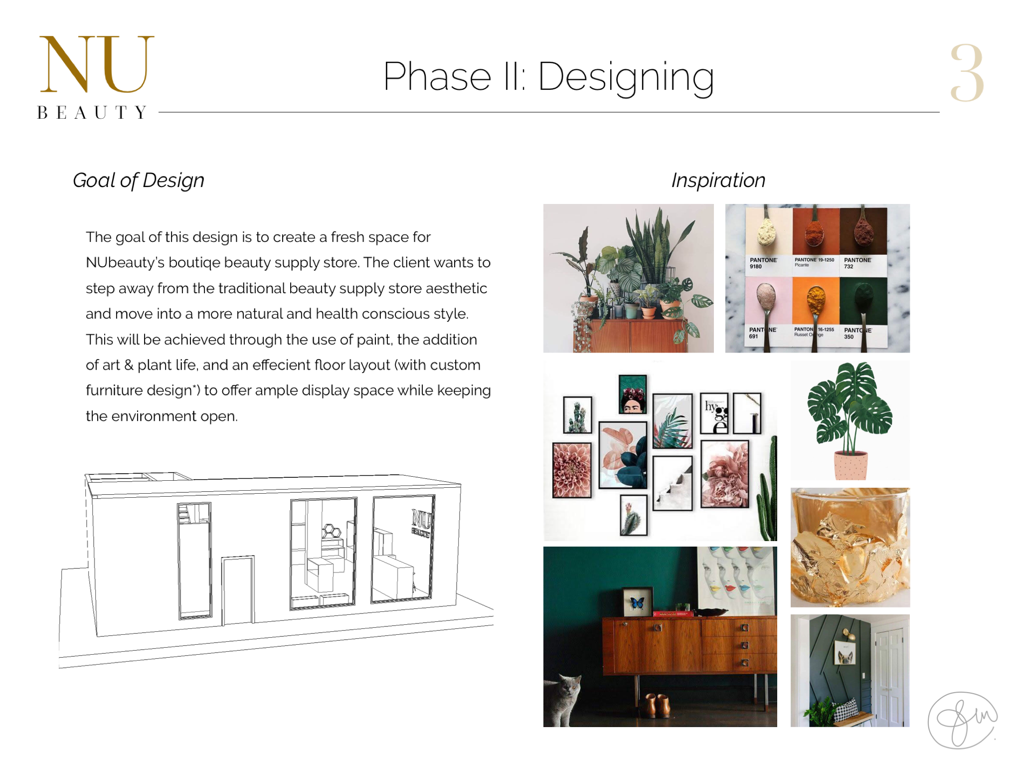 The goal of this design was to create a fresh space for NU Beauty’s boutique beauty supply store. The Client wanted to step away from the traditional aesthetic of beauty supply stores and focus on a more holistic design.
