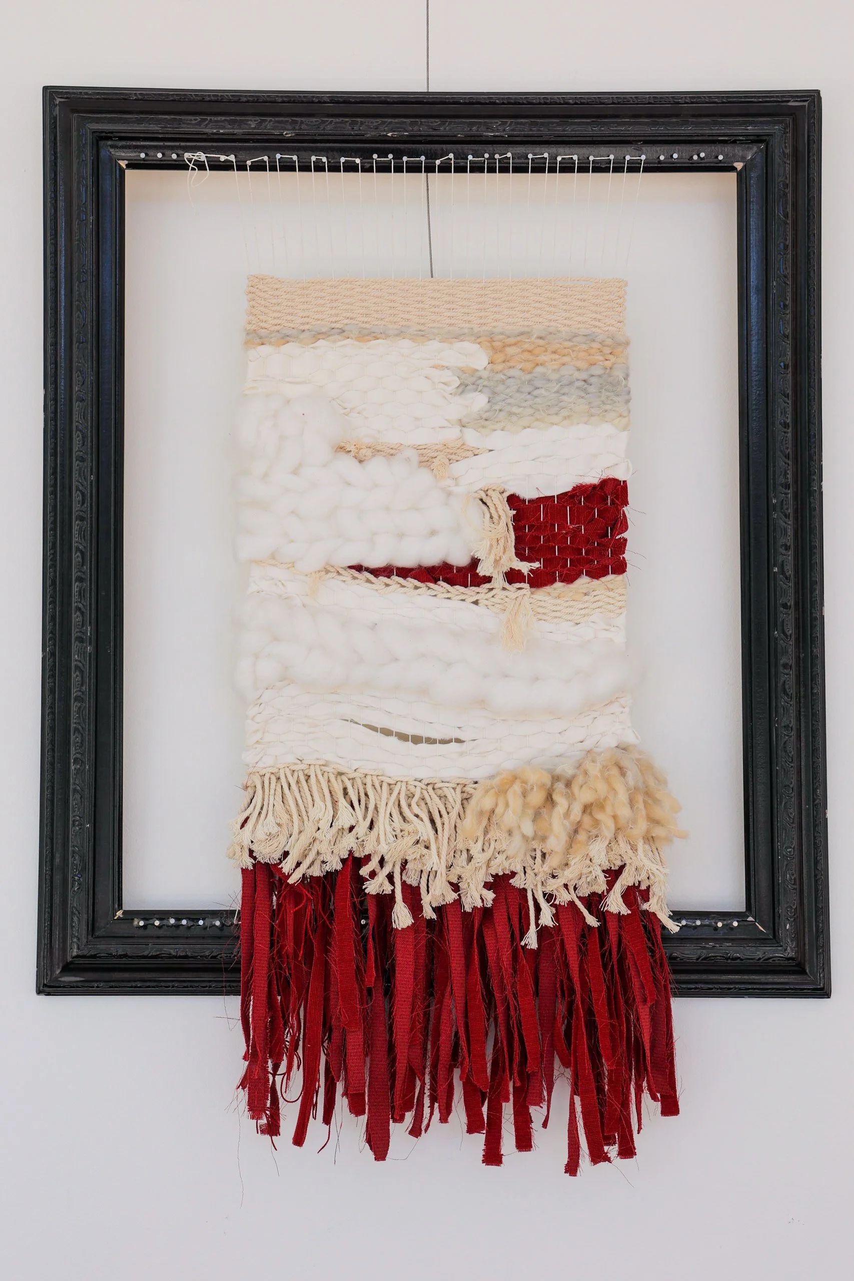 MATERIALS: Salvaged frame, nails, various post-consumer textiles